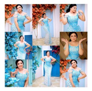 فستاناً منسدلاً أبرز جمالها وأناقتها، وتزينت روح
